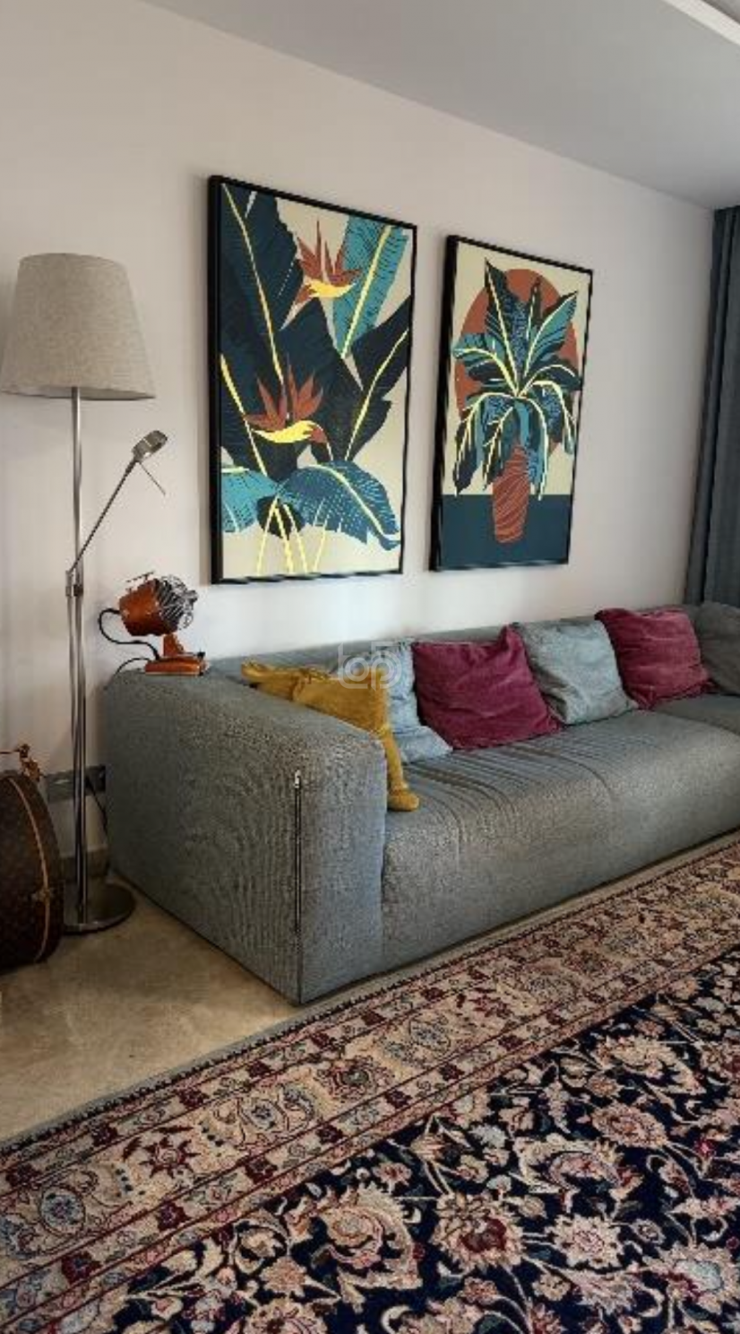 Внутреннее пространство апартаментов выполнено с использованием высококачественных материалов и современной отделки. В квартире имеется полностью оборудованная кухня, гостиная с выходом на частную террасу, а также гостевой туалет. Для комфортного проживания предусмотрены кондиционирование воздуха, мраморные полы, двойное остекление, встроенные шкафы и кладовая. Апартаменты полностью меблированы и готовы к заселению.