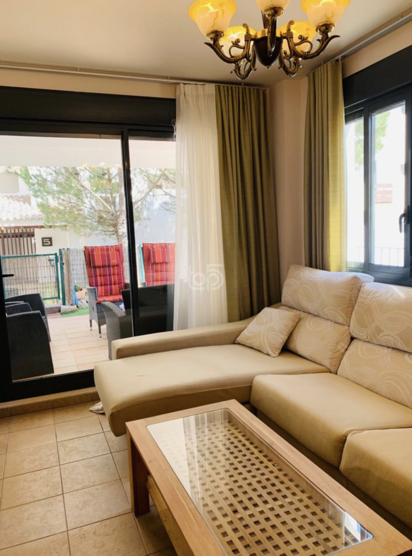 В квартире имеются две просторные спальни с вместительными встроенными шкафами и две полностью оборудованные ванные комнаты. Просторная гостиная объединена с выходом на частную террасу и балкон, с которых открываются приятные виды на сад и бассейн. Присутствует современная, полностью оборудованная кухня, позволяющая наслаждаться приготовлением пищи в домашней обстановке. Для удобства проживания предусмотрены система кондиционирования воздуха, лифт, а также крытая терраса для отдыха в жаркие дни.