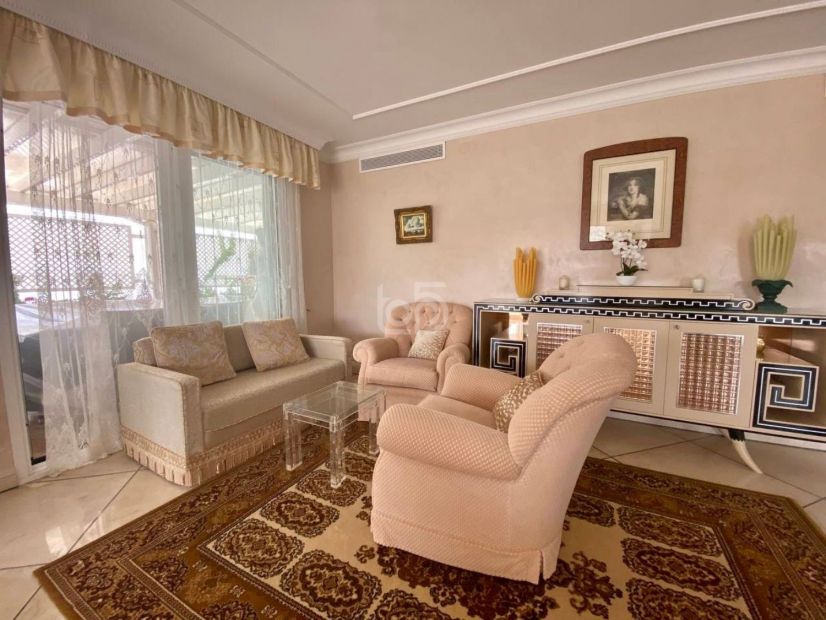 Tropical oasis on the south coast of Spain – Costa del Sol. An amazing authentic two-floors apartment at Las Brisas with an elegant and classy interior located in a few minutes away from the heart of luxury life in Marbella – Puerto Banus. Despite the close location to the port, the apartment complex is quite detached from others and has a very unique location, allowing you to fully enjoy your privacy and appeasement. Four amazing bedrooms, with elegant furniture in perfect condition, including four marble bathrooms. This apartment is located on the last floor with an amazing terrace and private pool surrounded by beautiful view on the landscape and plants&flowers. It is a perfect place for relaxation. The apartment is decorated with precious statues and paintings. Moreover, it has a big territory of golf fields and pool. Also, it has 2 parking spaces.