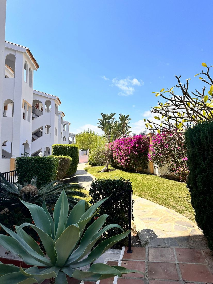 Residents benefit from a range of communal facilities, including a heated swimming pool and beautifully maintained gardens. The property also offers access to a communal garage and a lift, ensuring ease of movement and secure parking. The apartment’s proximity to the sea and beach further enhances its appeal, making it an excellent choice for those looking to enjoy the Costa del Sol lifestyle.