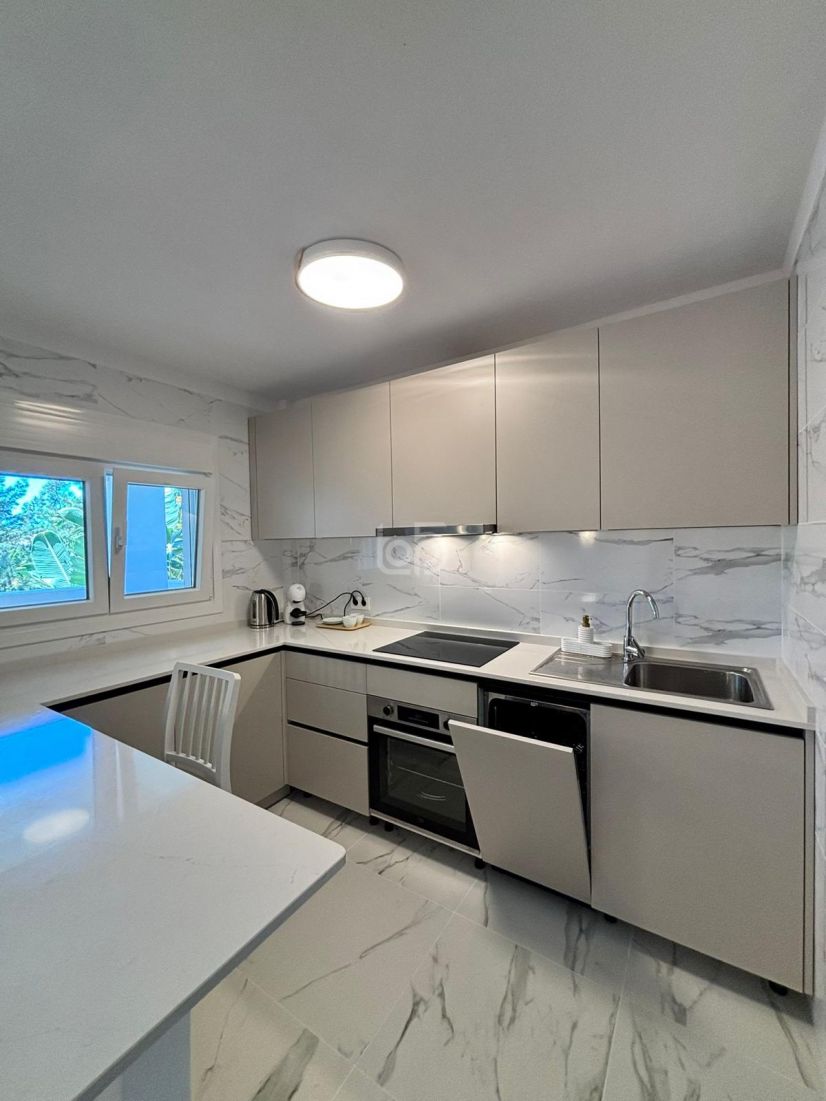 El apartamento dispone de un amplio salón con una encantadora chimenea, creando un ambiente cálido y acogedor. La cocina está completamente equipada y diseñada para la vida moderna, mientras que el lavadero independiente aporta mayor funcionalidad. Ambos dormitorios cuentan con armarios empotrados, lo que garantiza un amplio espacio de almacenamiento, y la vivienda dispone de aire acondicionado en todas las estancias para asegurar el confort durante todo el año.