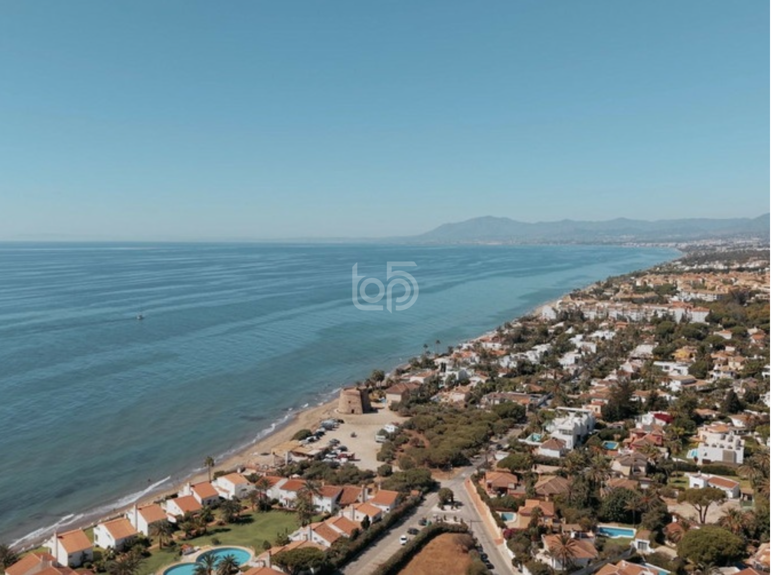A poca distancia de la playa.